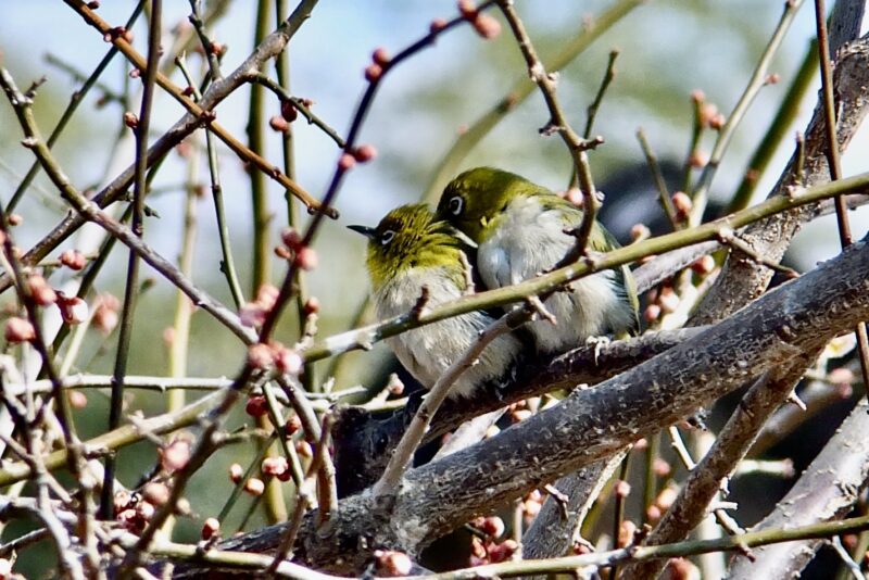 梅の蕾が膨らみ始める頃いつもメジロがやって来ます